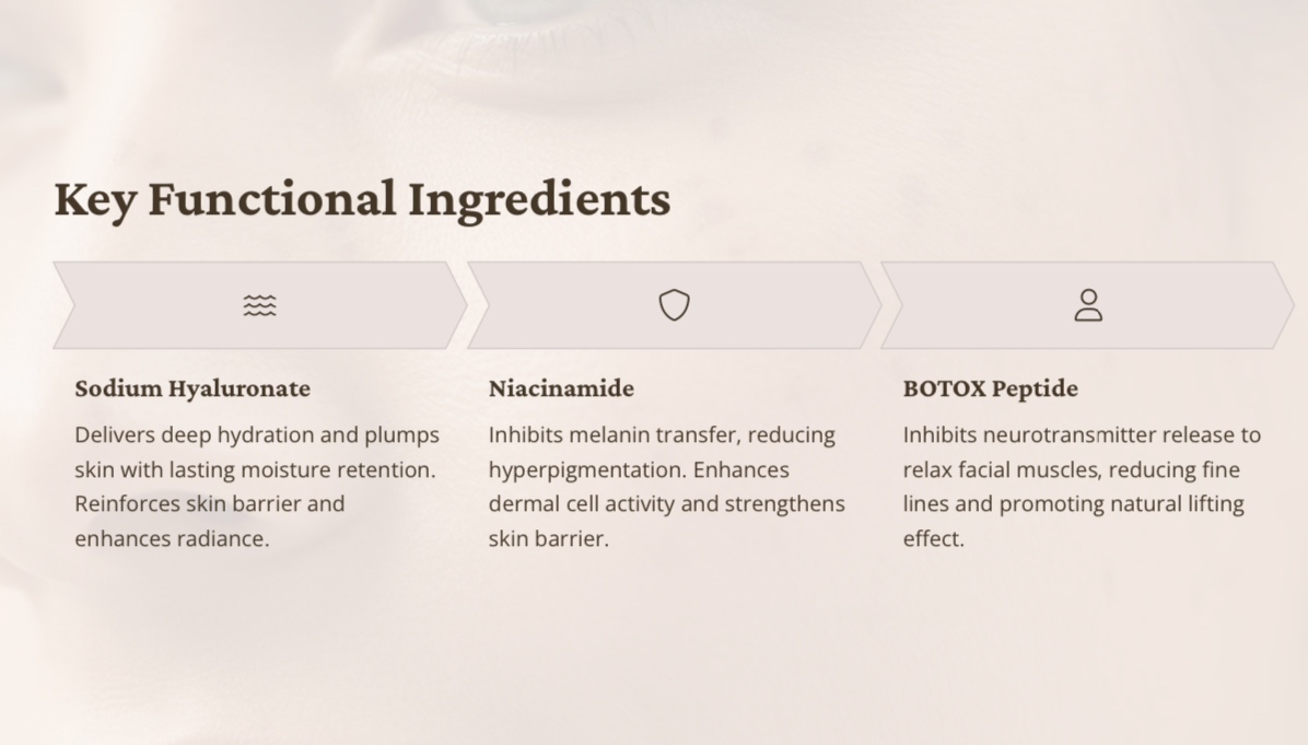 Wrinkle Relaxation: Featuring BOTOX Peptide, a next-generation botulinum-derived peptide that smooths fine lines and tightens pores.
